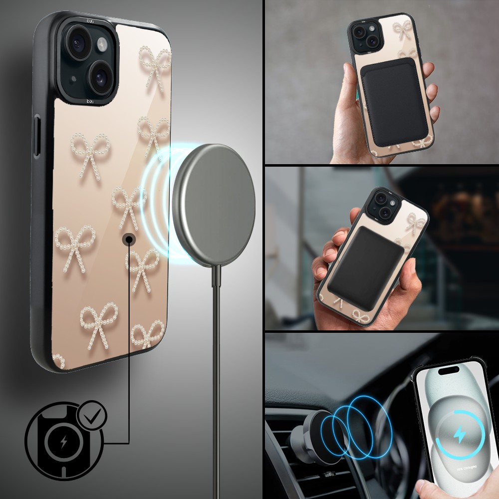 Etui do iPhone 15 Plus IBIZU DropGuard Matt z MagSafe, Zimowa magia, Perłowe kokardki ip 15-2
