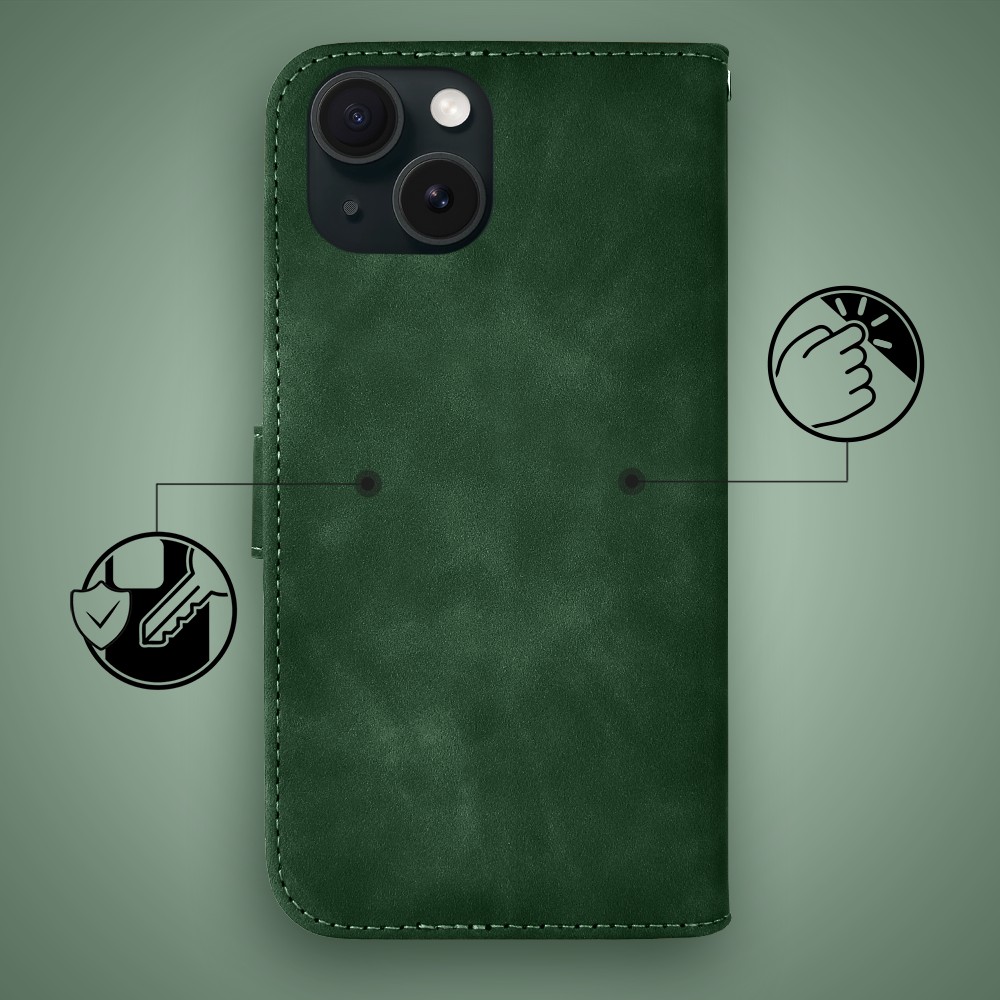 Etui do iPhone 15 książkowe Velvet Touch, aksamitne, portfelowe z zamknięciem, zielone (9)