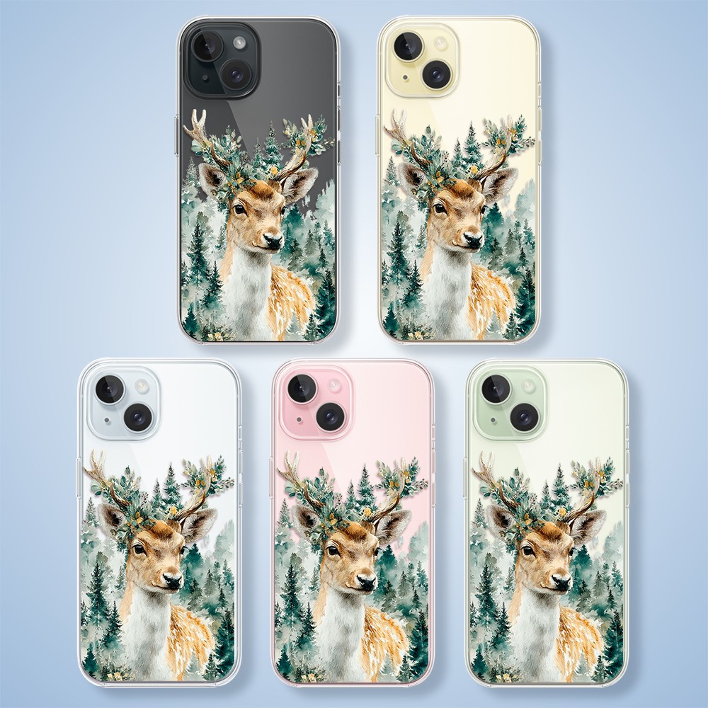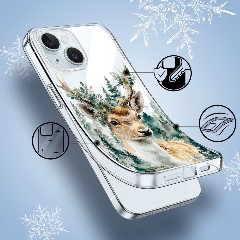 Etui do iPhone 15, Przytulne święta, Leśny Jelonek, przeźroczyste2