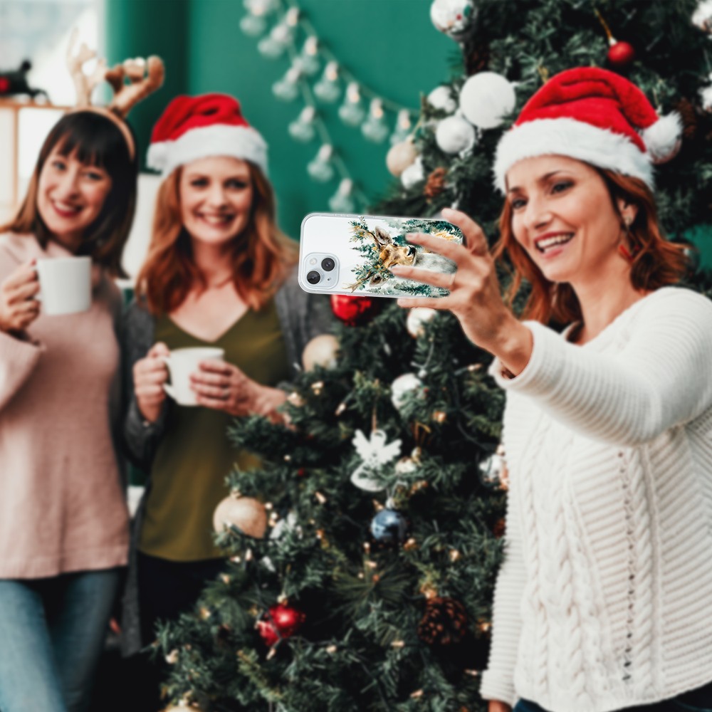 Etuitelefon.pl > Akcesoria do iphone 15 plus > Etui iphone 15 plus > Etui do iphone 15 plus, przytulne święta, leśny jelonek, przeźroczyste