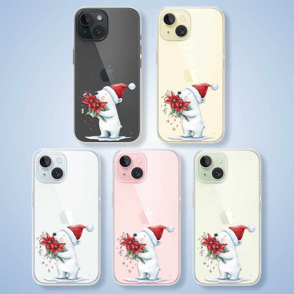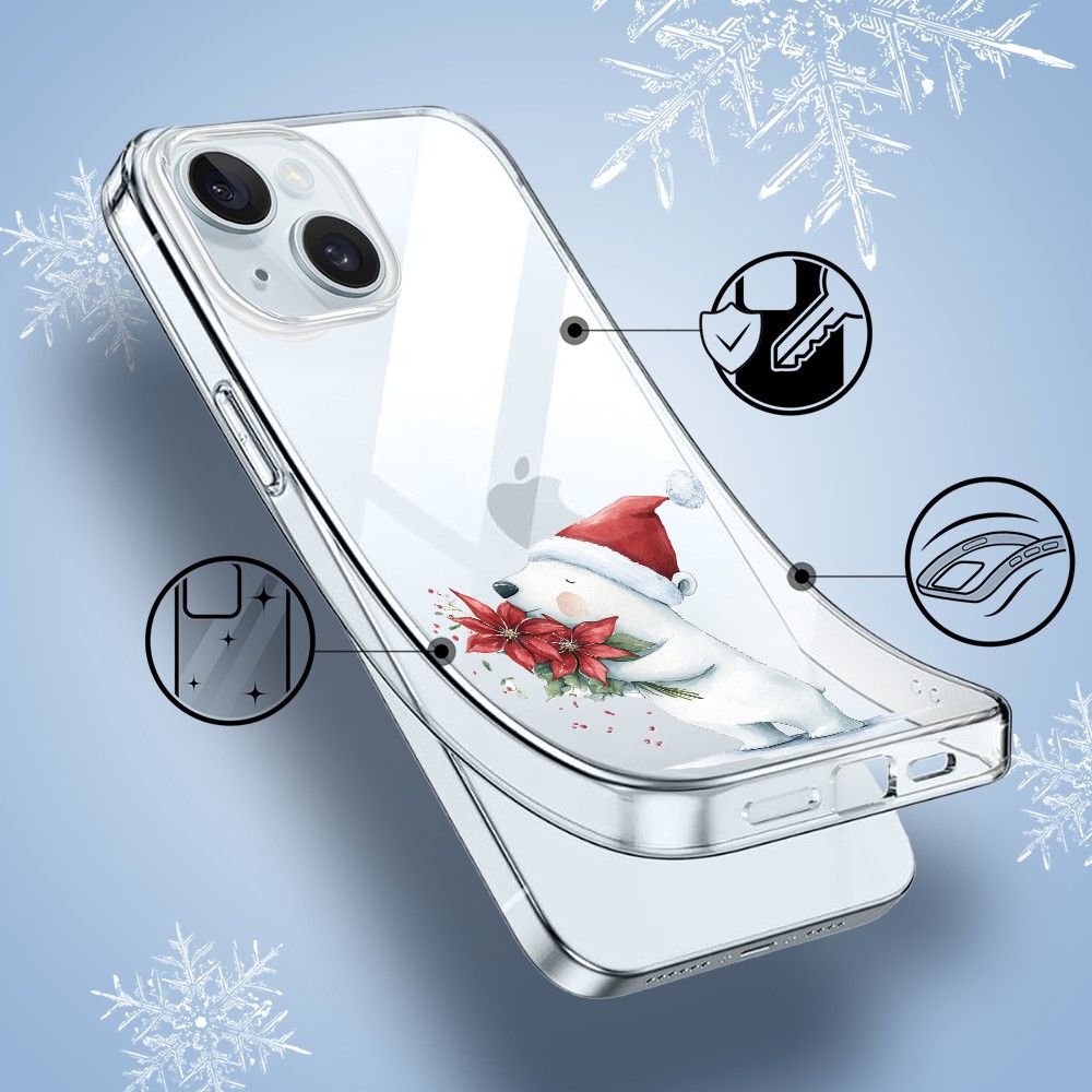 Etuitelefon.pl > Akcesoria do iphone 15 plus > Etui iphone 15 plus > Etui do iphone 15 plus, przytulne święta, miś świąteczny, przeźroczyste