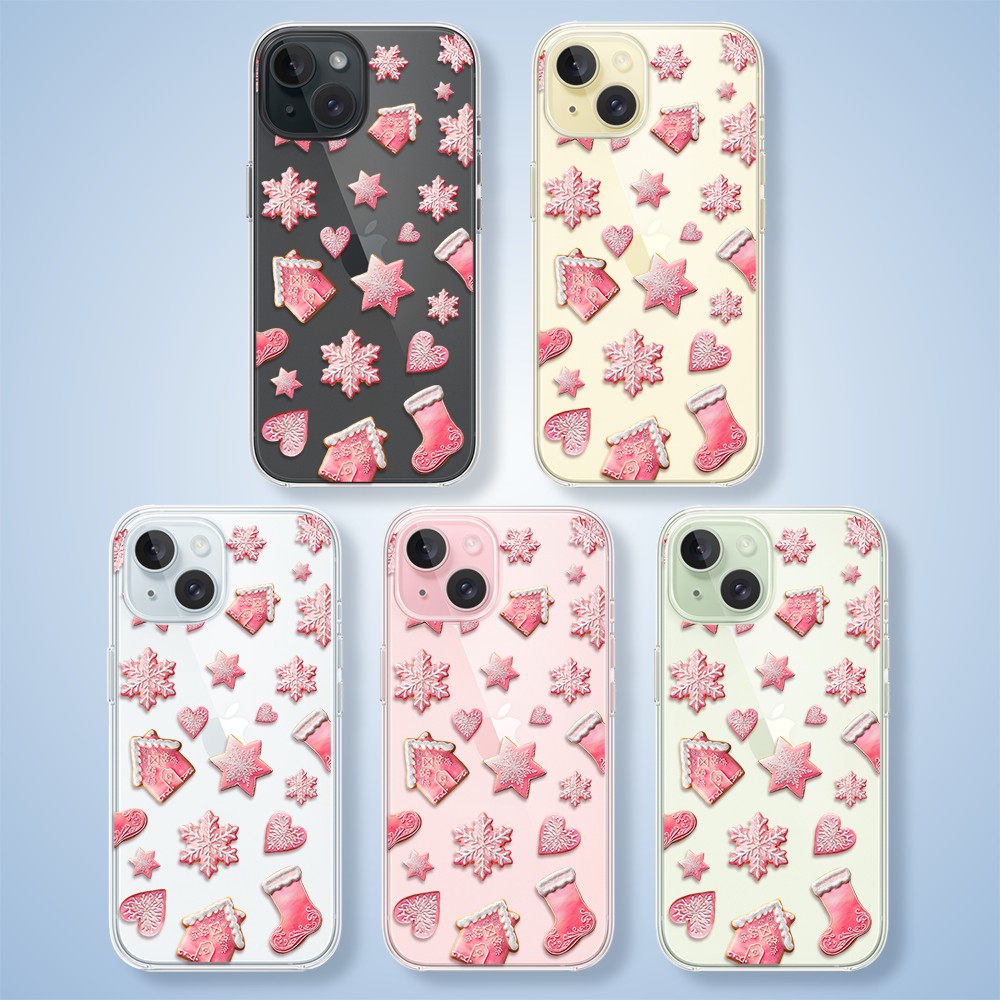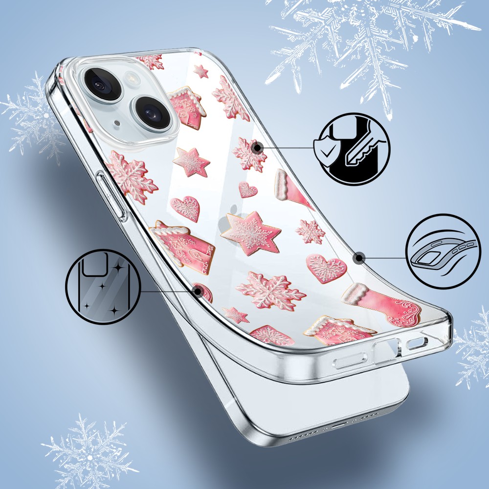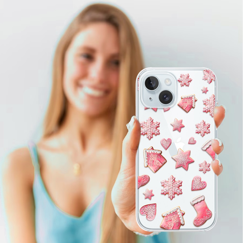 Etui do iPhone 15, Przytulne święta, Różowe pierniczki, przeźroczyste1