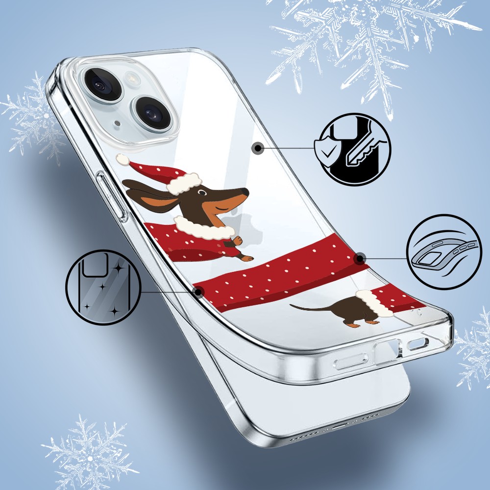 Etuitelefon.pl > Akcesoria do iphone 15 plus > Etui iphone 15 plus > Etui do iphone 15 plus, przytulne święta, Świąteczny jamnik, przeźroczyste