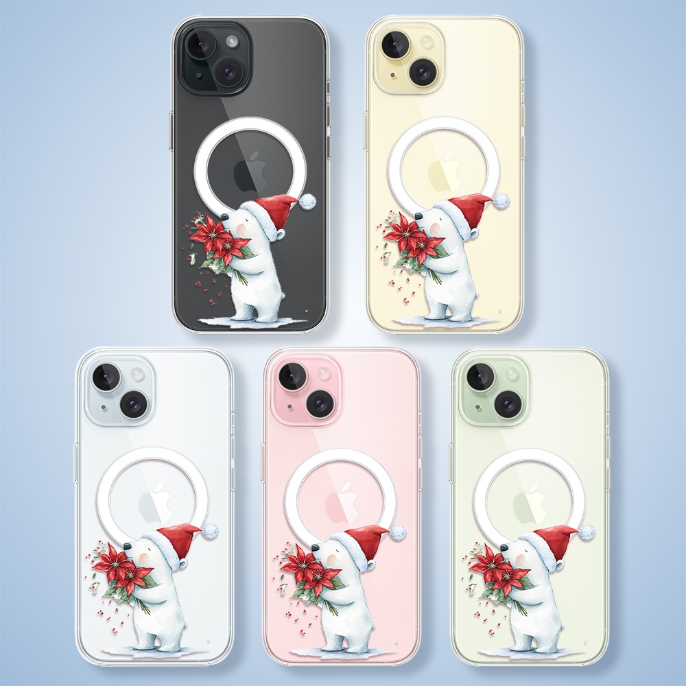 Etui do iPhone 15 z MagSafe, Przytulne święta, Miś świąteczny, przeźroczyste1