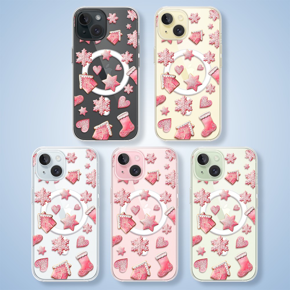 Etui do iPhone 15 z MagSafe, Przytulne święta, Różowe pierniczki, przeźroczyste1