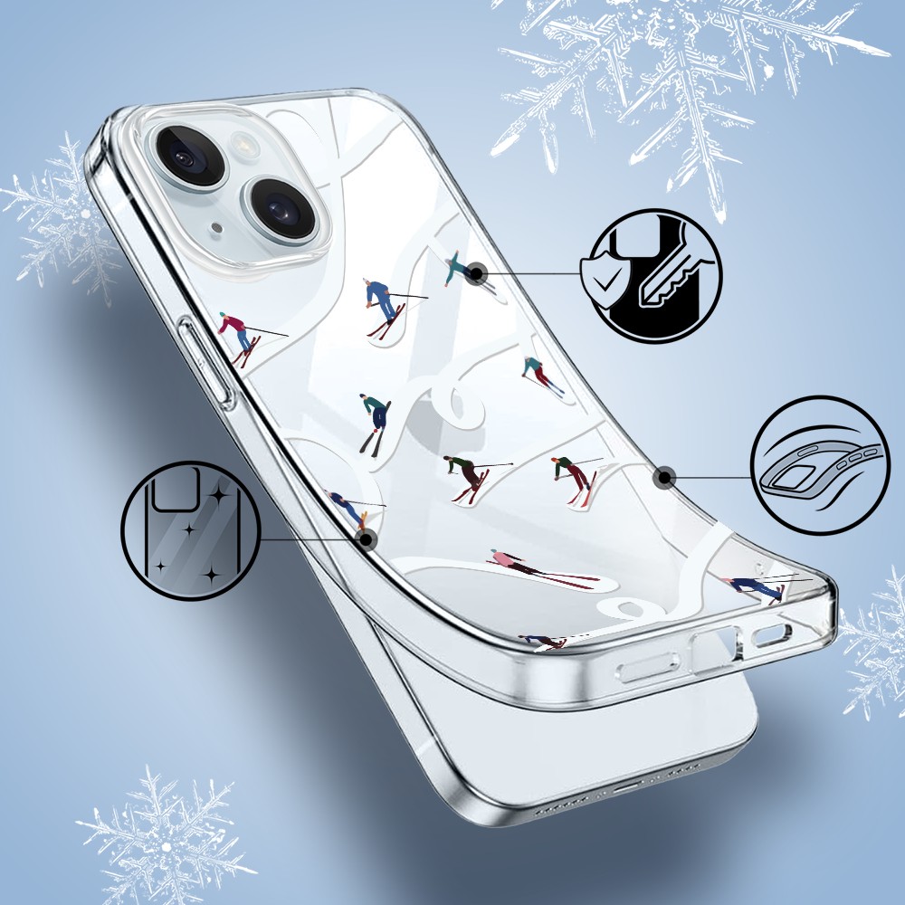 Etuitelefon.pl > Akcesoria do iphone 15 plus > Etui iphone 15 plus > Etui do iphone 15 plus, zimowa magia, narciarskie wiraże, przeźroczyste