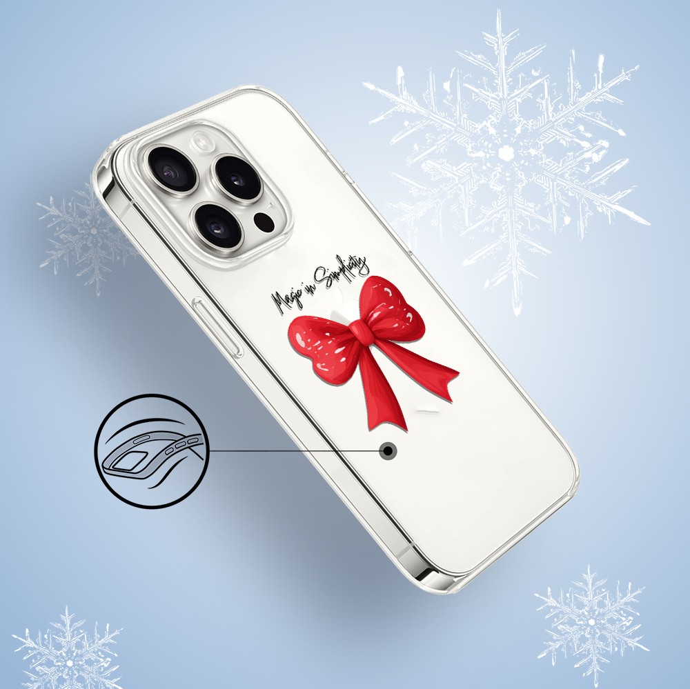 Etui do iPhone 15 Pro, Przytulne święta, Czerwona kokarda, przeźroczyste1