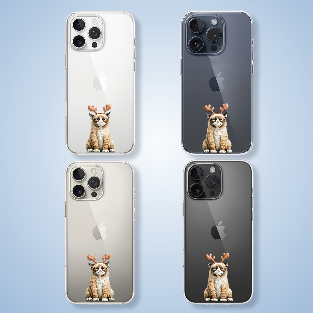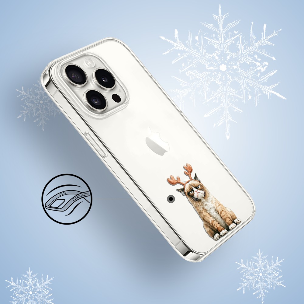 Etuitelefon.pl > Akcesoria do iphone 15 pro max > Etui iphone 15 pro max > Etui do iphone 15 pro max, przytulne święta, kot który nie chciał być reniferem, przeźroczyste