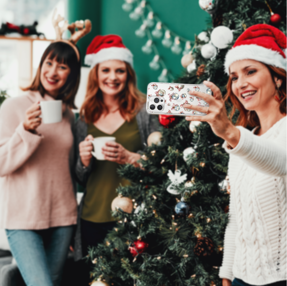 Etuitelefon.pl > Akcesoria do iphone 15 pro max > Etui iphone 15 pro max > Etui do iphone 15 pro max, przytulne święta, pastelowe bombki, przeźroczyste