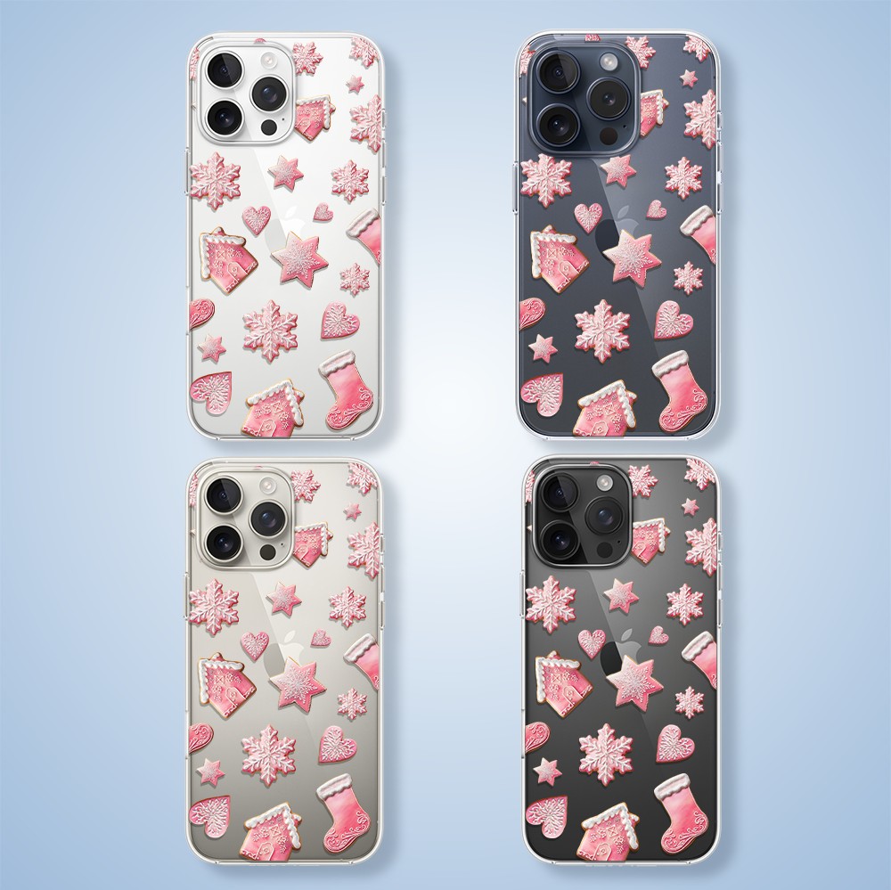 Etuitelefon.pl > Akcesoria do iphone 15 pro max > Etui iphone 15 pro max > Etui do iphone 15 pro max, przytulne święta, różowe pierniczki, przeźroczyste