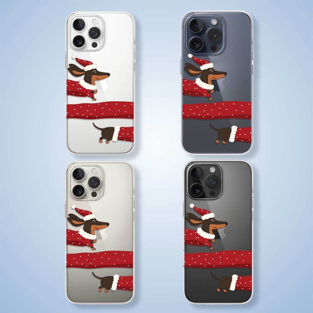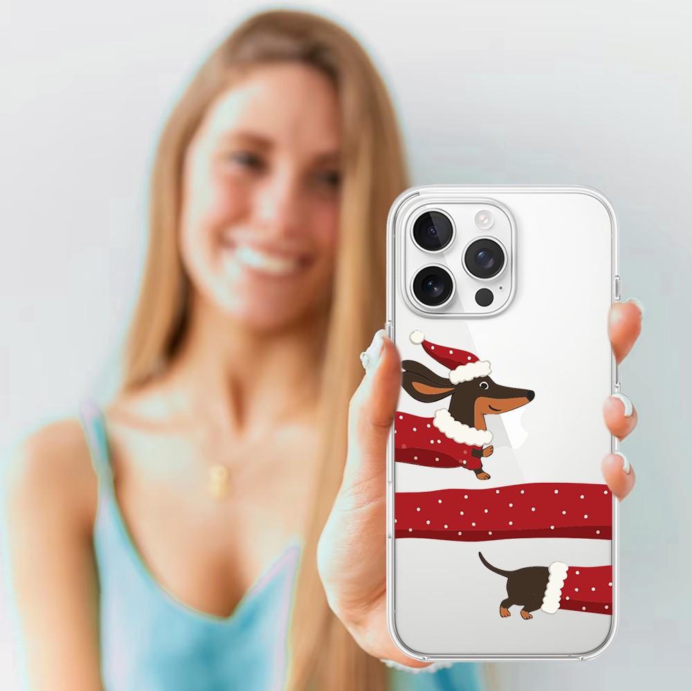 Etuitelefon.pl > Akcesoria do iphone 15 pro max > Etui iphone 15 pro max > Etui do iphone 15 pro max, przytulne święta, Świąteczny jamnik, przeźroczyste