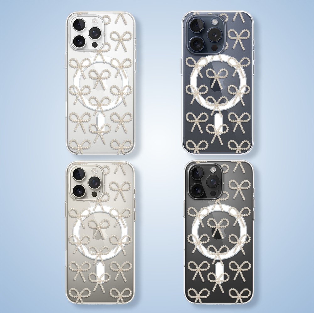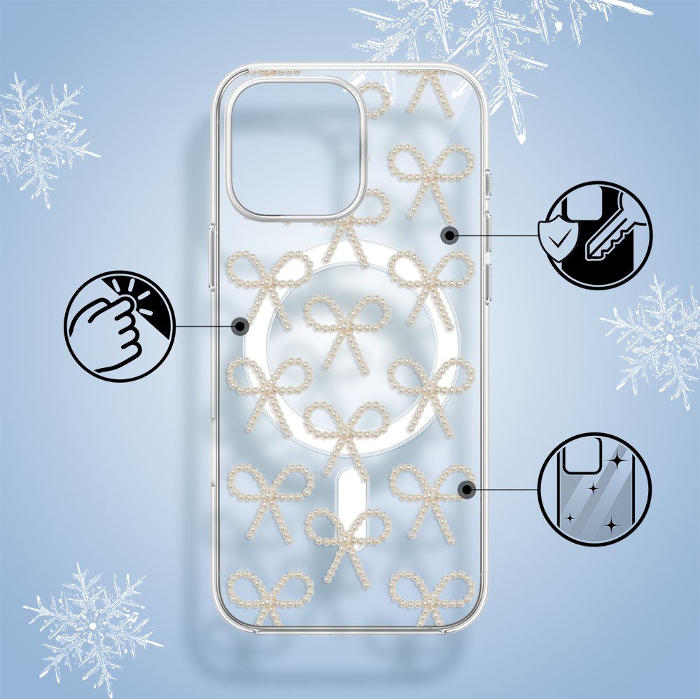 Etuitelefon.pl > Akcesoria do iphone 15 pro max > Etui iphone 15 pro max > Etui do iphone 15 pro max z magsafe, przytulne święta, złote kokardki, przeźroczyste