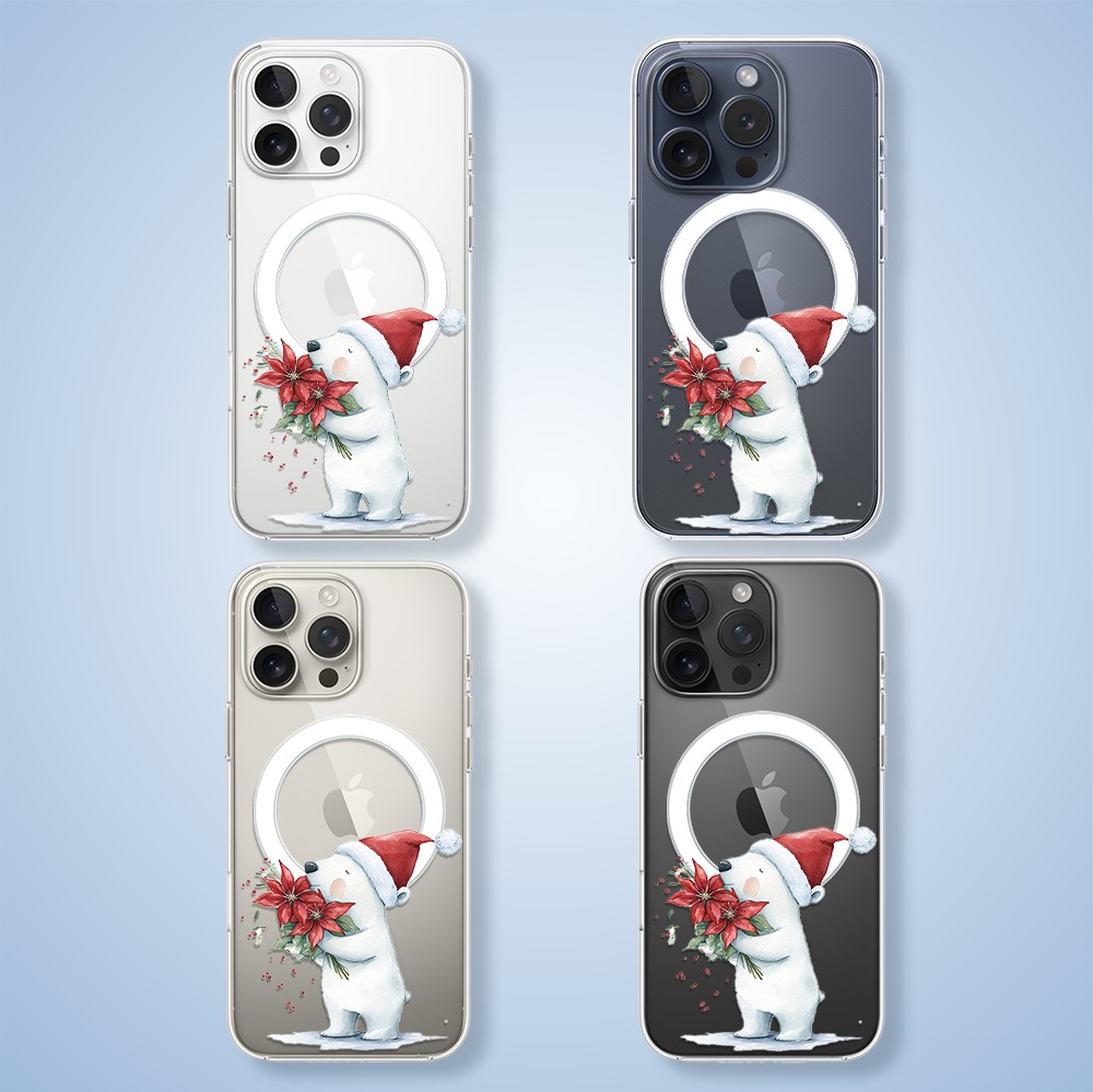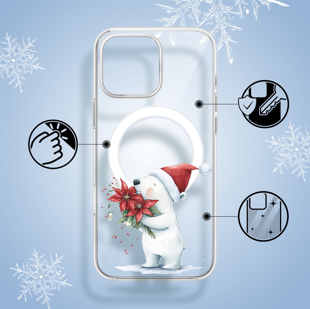 Etuitelefon.pl > Akcesoria do iphone 15 pro > Etui iphone 15 pro > Etui do iphone 15 pro z magsafe, przytulne święta, miś świąteczny, przeźroczyste