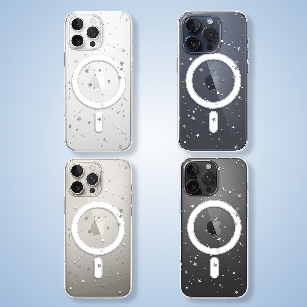 Etui do iPhone 15 Pro Max z MagSafe, Zimowa Magia, Szampańskie gwiazdki, przeźroczyste1