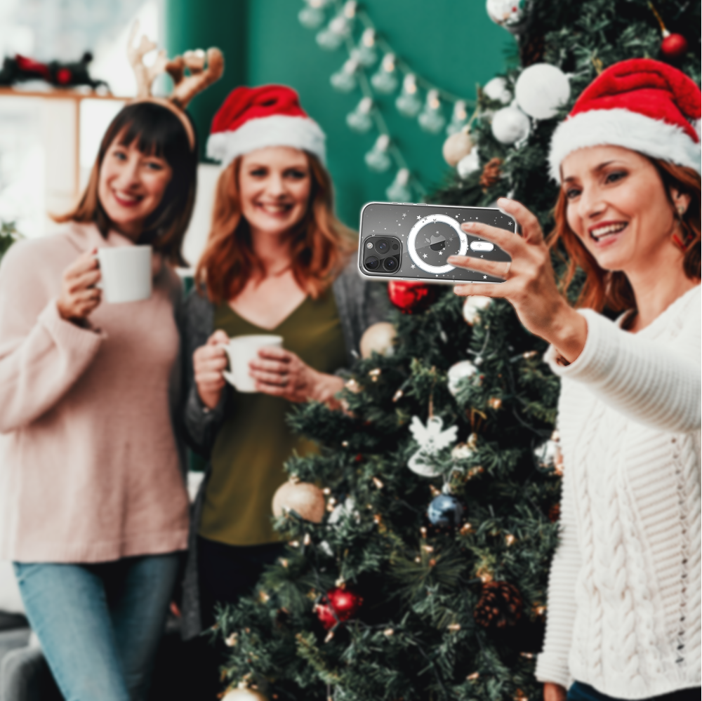 Etuitelefon.pl > Akcesoria do iphone 15 pro > Etui iphone 15 pro > Etui do iphone 15 pro z magsafe, zimowa magia, szampańskie gwiazdki, przeźroczyste