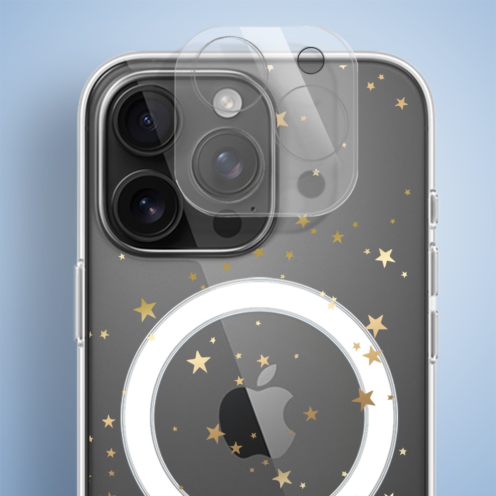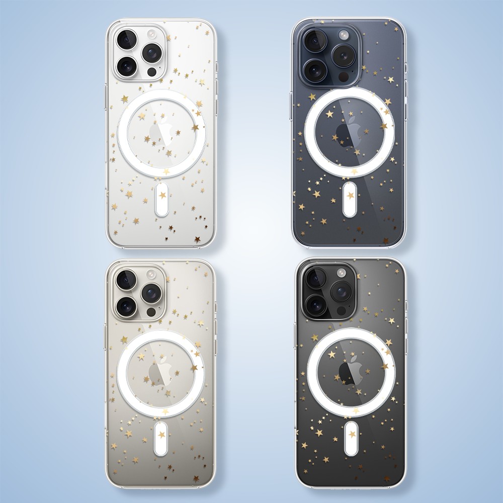 Etui do iPhone 15 Pro Max z MagSafe, Zimowa Magia, Złote gwiazdki, przeźroczyste1