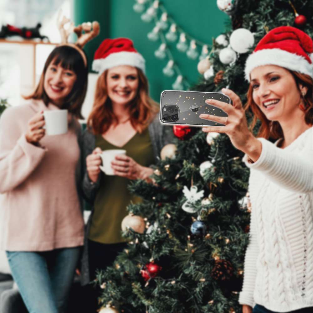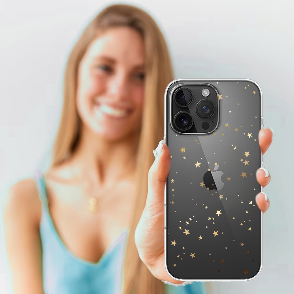 Etuitelefon.pl > Akcesoria do iphone 15 pro > Etui iphone 15 pro > Etui do iphone 15 pro, zimowa magia, złote gwiazdki, przeźroczyste