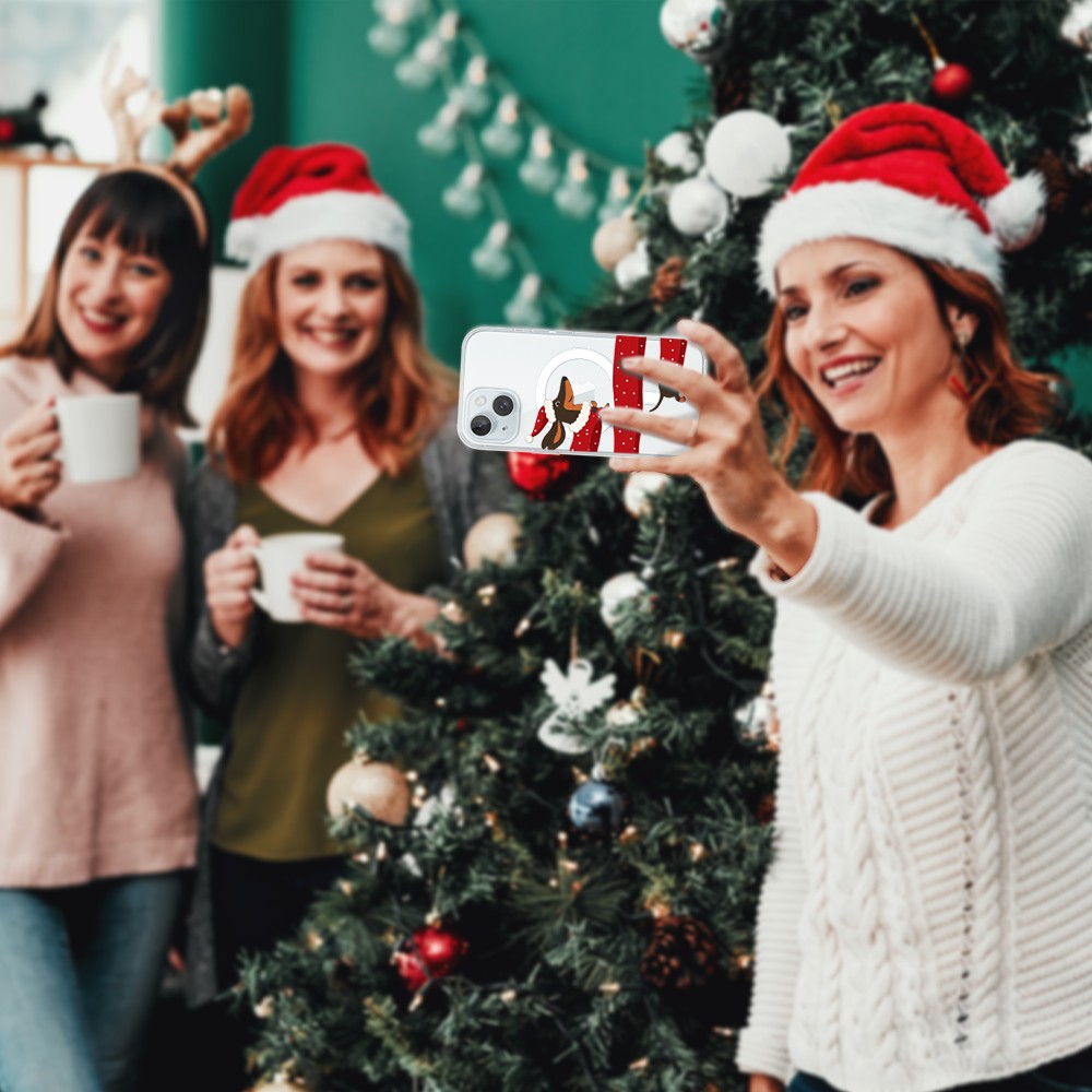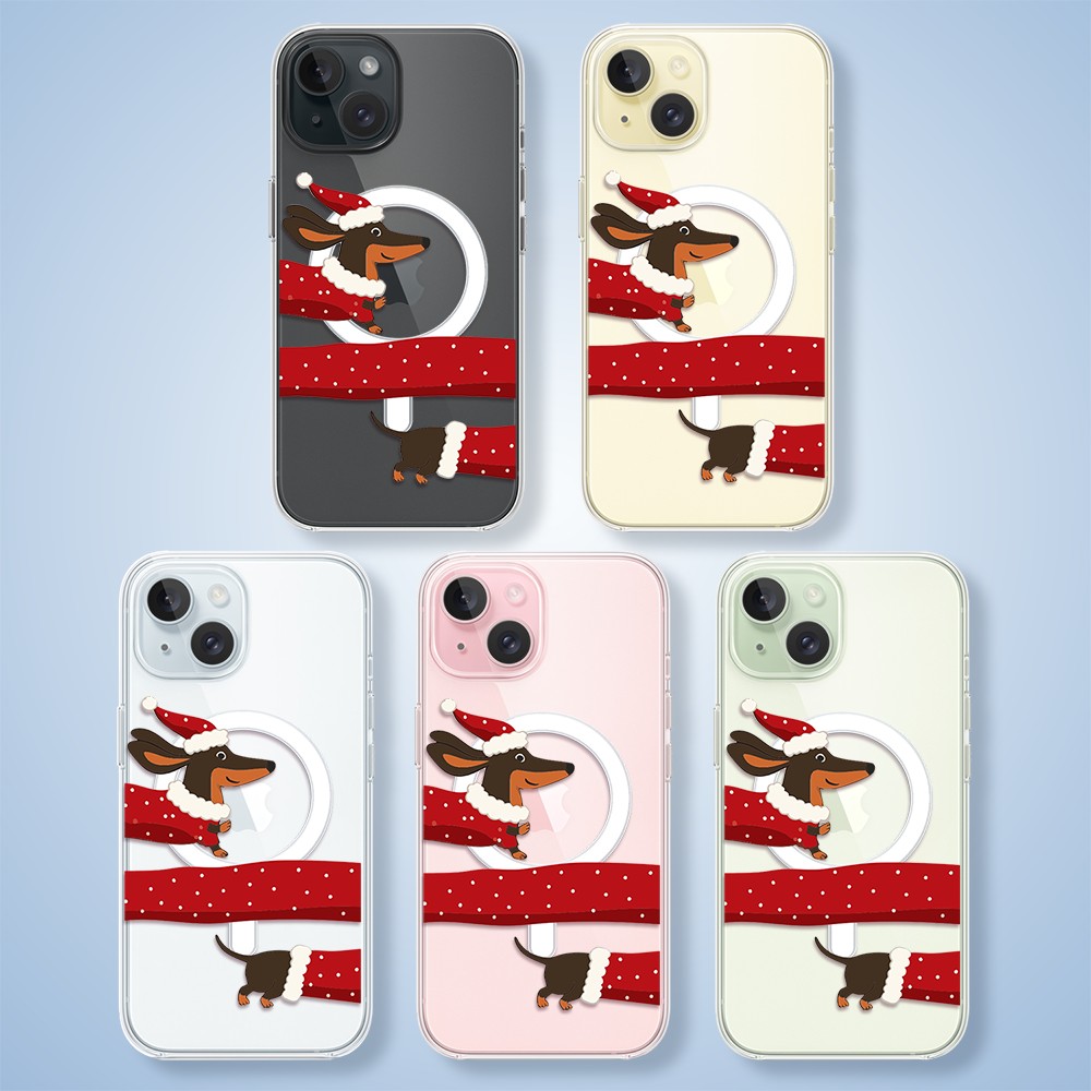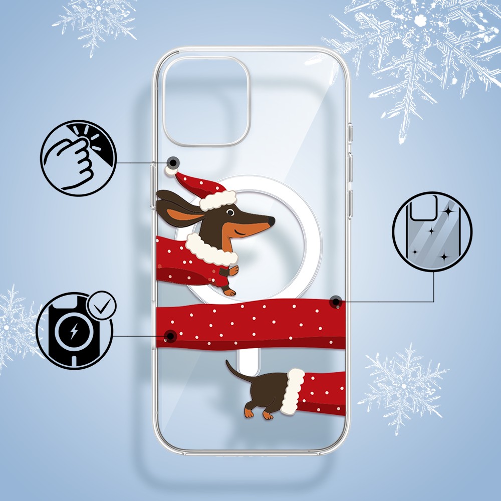 Etuitelefon.pl > Akcesoria do iphone 15 > Etui iphone 15 > Etui do iphone 15 z magsafe, przytulne święta, Świąteczny jamnik, przeźroczyste