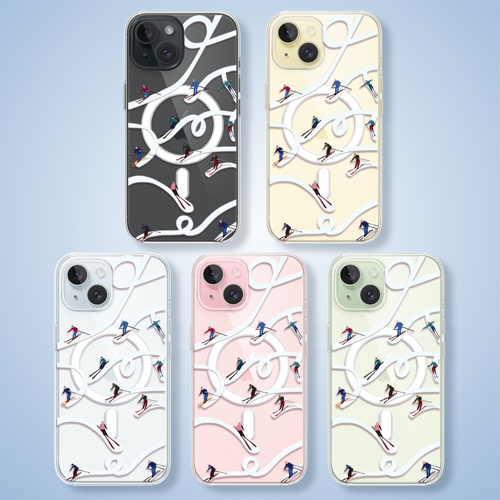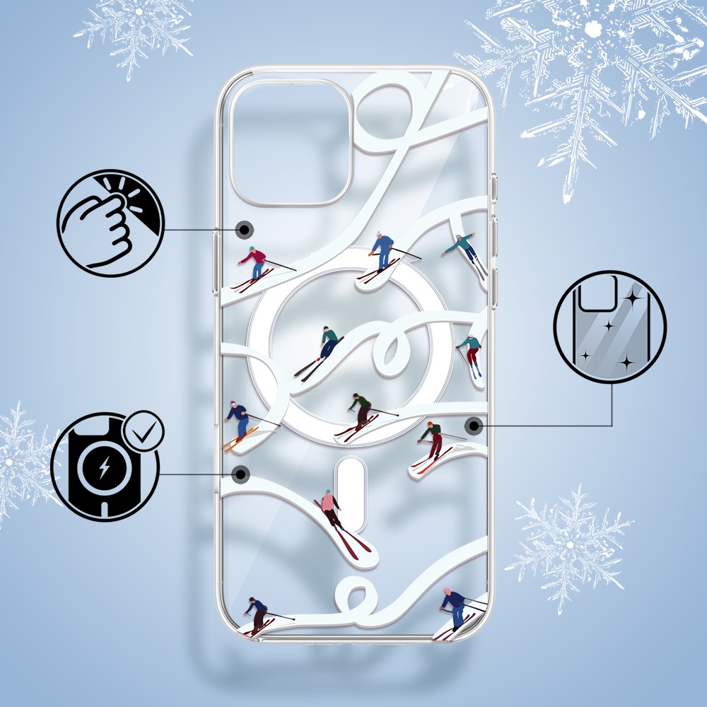 Etui do iPhone 15 z MagSafe, Zimowa Magia, Narciarskie wiraże, przeźroczyste1