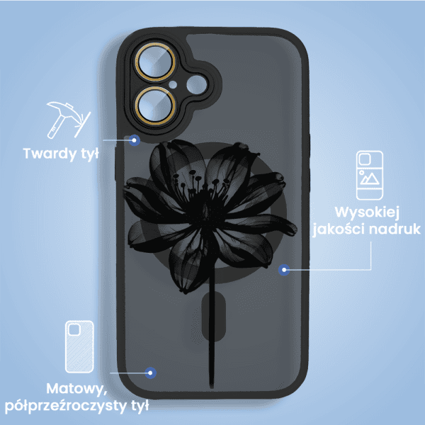 etui do iphone 16 color flush z magsafe, z osłoną aparatu, z nadrukiem czarny kwiat, czarne
