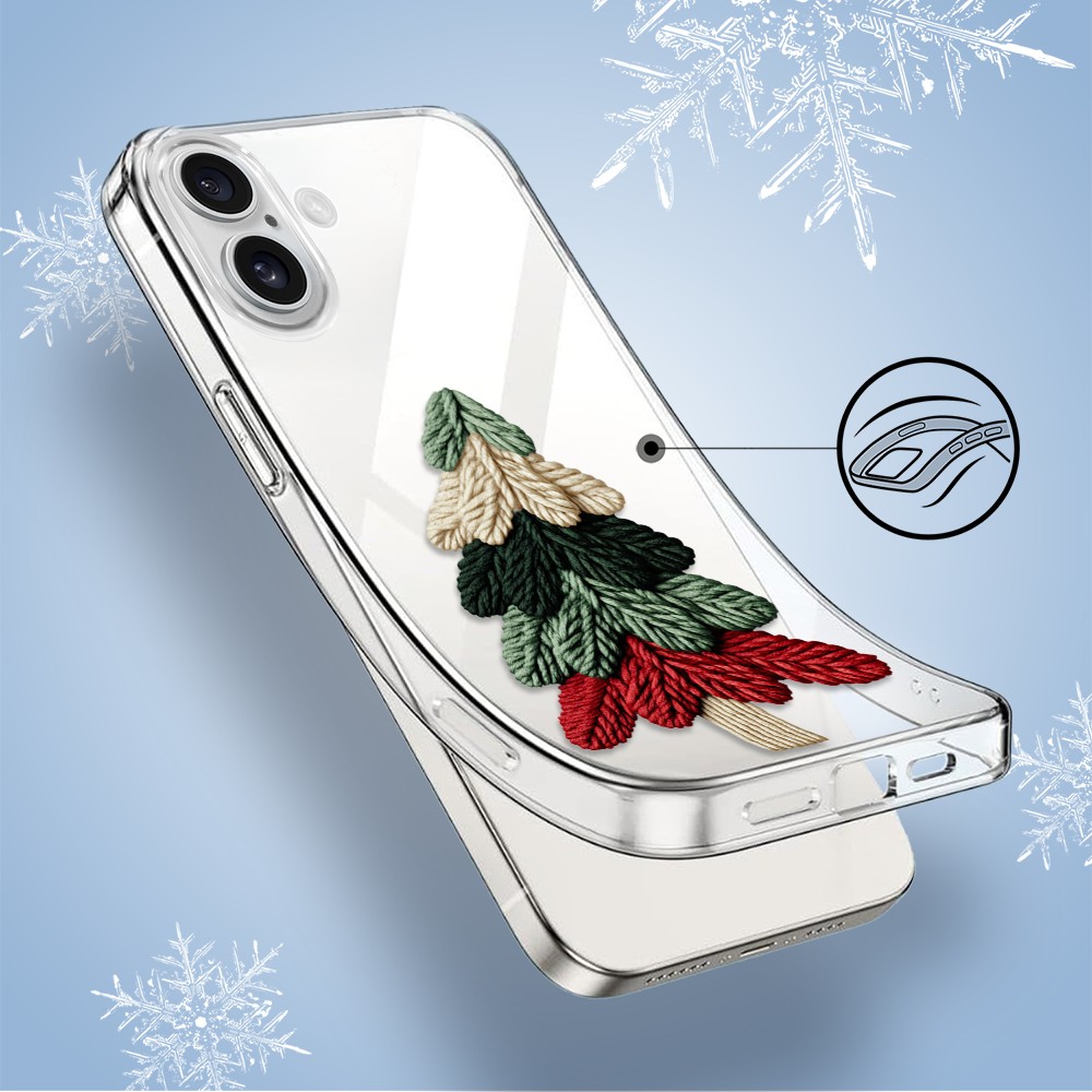 Etui do iPhone 16, Przytulne święta, Dziana choinka, przeźroczyste1