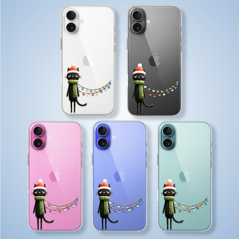 Etuitelefon.pl > Akcesoria do iphone 16 plus > Etui iphone 16 plus > Etui do iphone 16 plus, przytulne święta, kot przebrany za elfa, przeźroczyste