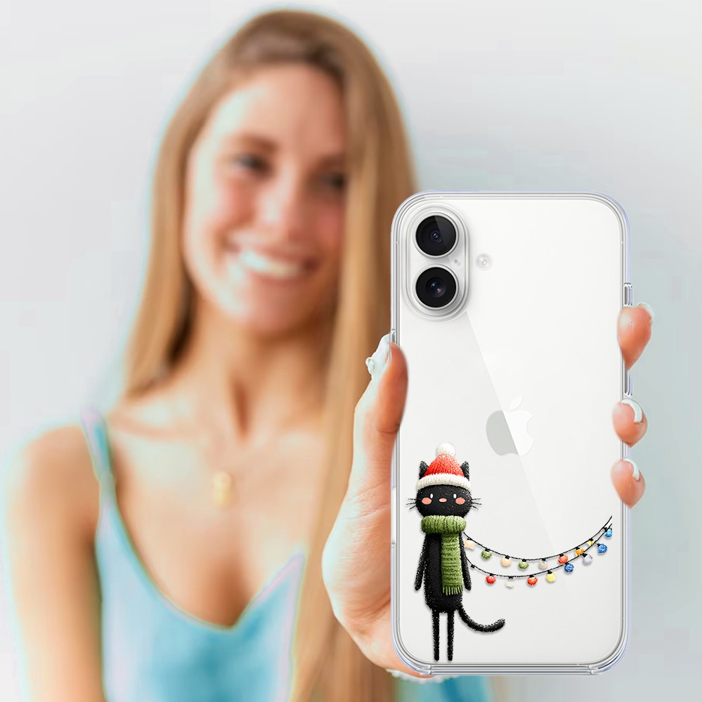 Etui do iPhone 16, Przytulne święta, Kot przebrany za elfa, przeźroczyste4