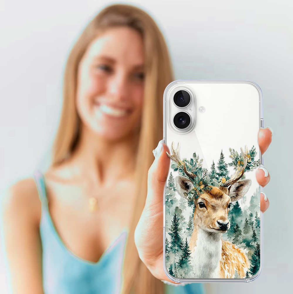 Etuitelefon.pl > Akcesoria do iphone 16 plus > Etui iphone 16 plus > Etui do iphone 16 plus, przytulne święta, leśny jelonek, przeźroczyste
