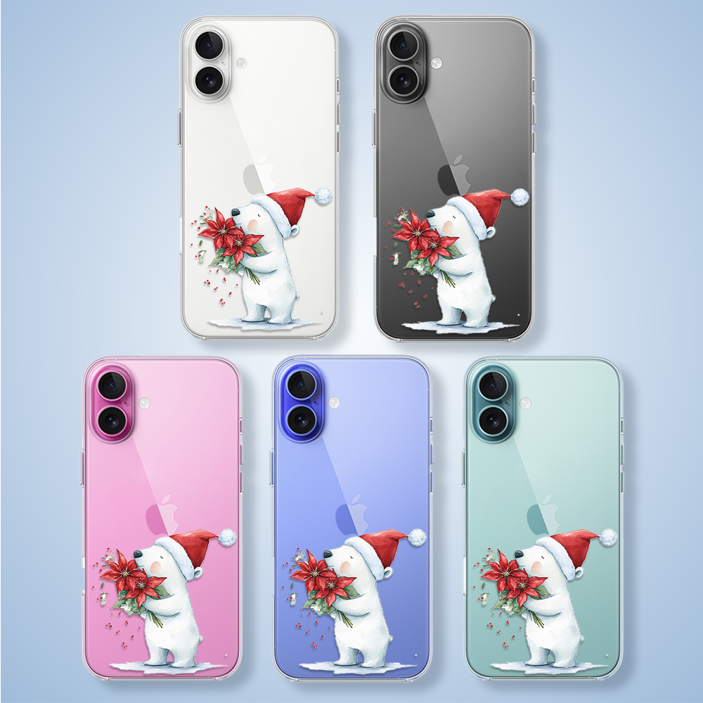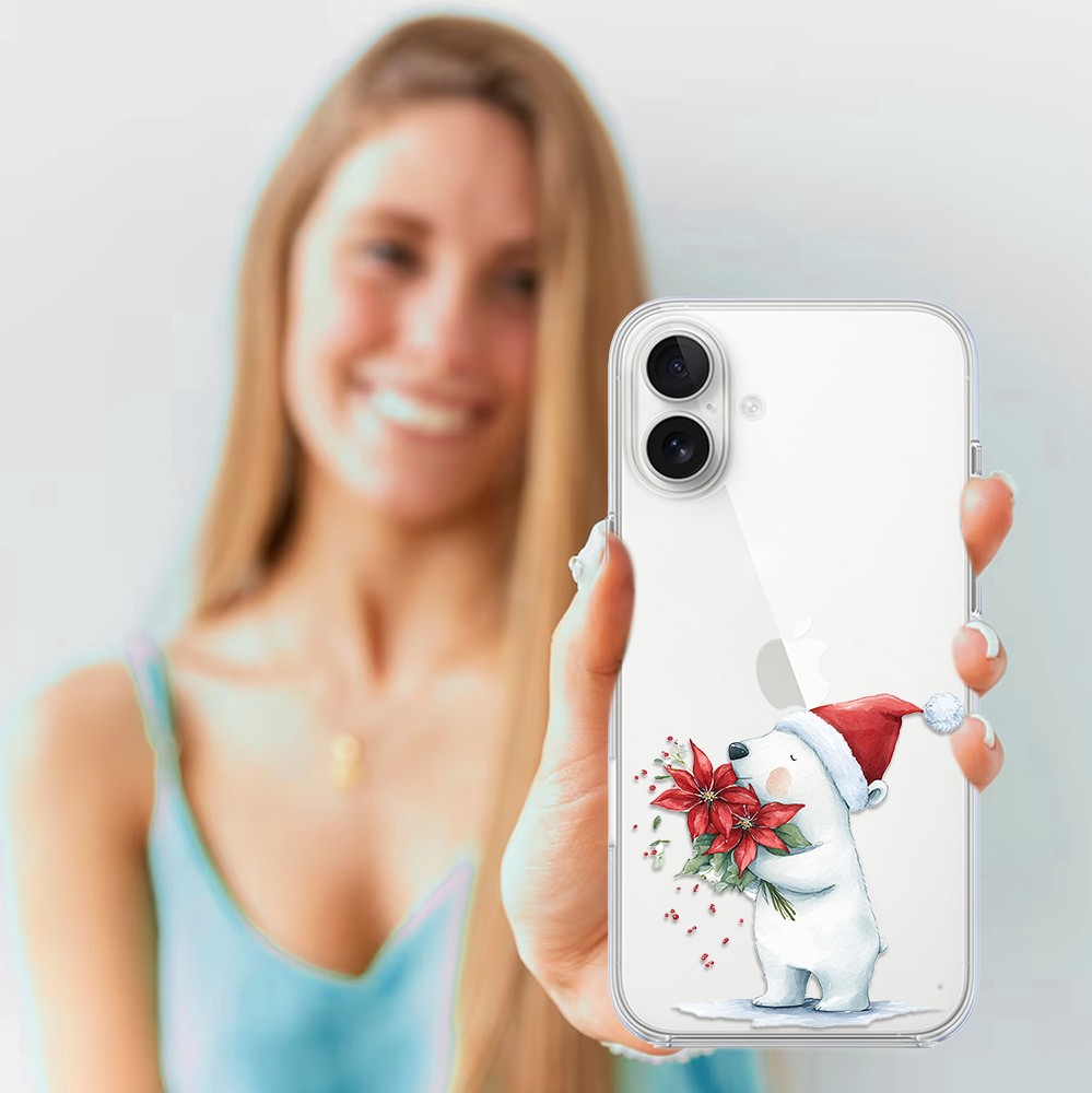 Etuitelefon.pl > Akcesoria do iphone 16 plus > Etui iphone 16 plus > Etui do iphone 16 plus, przytulne święta, miś świąteczny, przeźroczyste