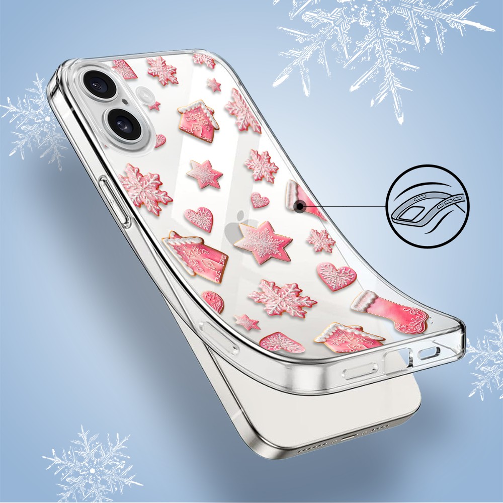 Etui do iPhone 16, Przytulne święta, Różowe pierniczki, przeźroczyste1