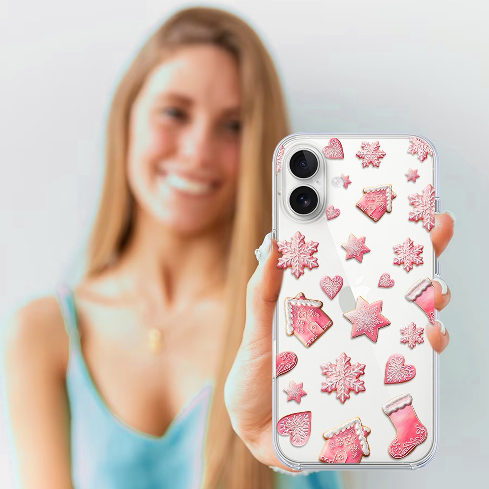 Etuitelefon.pl > Akcesoria do iphone 16 plus > Etui iphone 16 plus > Etui do iphone 16 plus, przytulne święta, różowe pierniczki, przeźroczyste