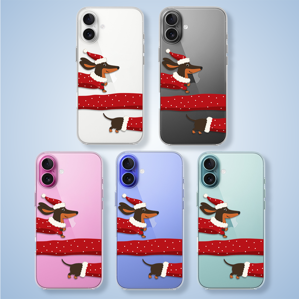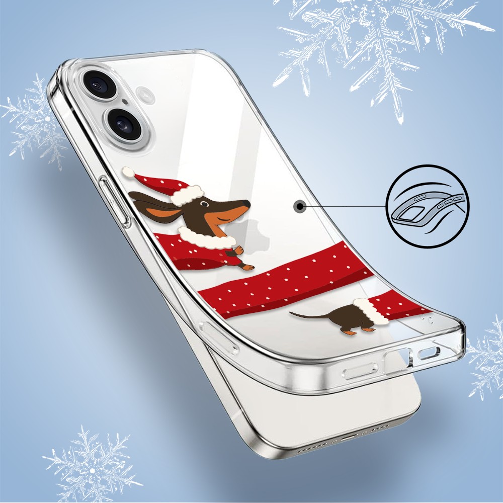 Etuitelefon.pl > Akcesoria do iphone 16 plus > Etui iphone 16 plus > Etui do iphone 16 plus, przytulne święta, Świąteczny jamnik, przeźroczyste