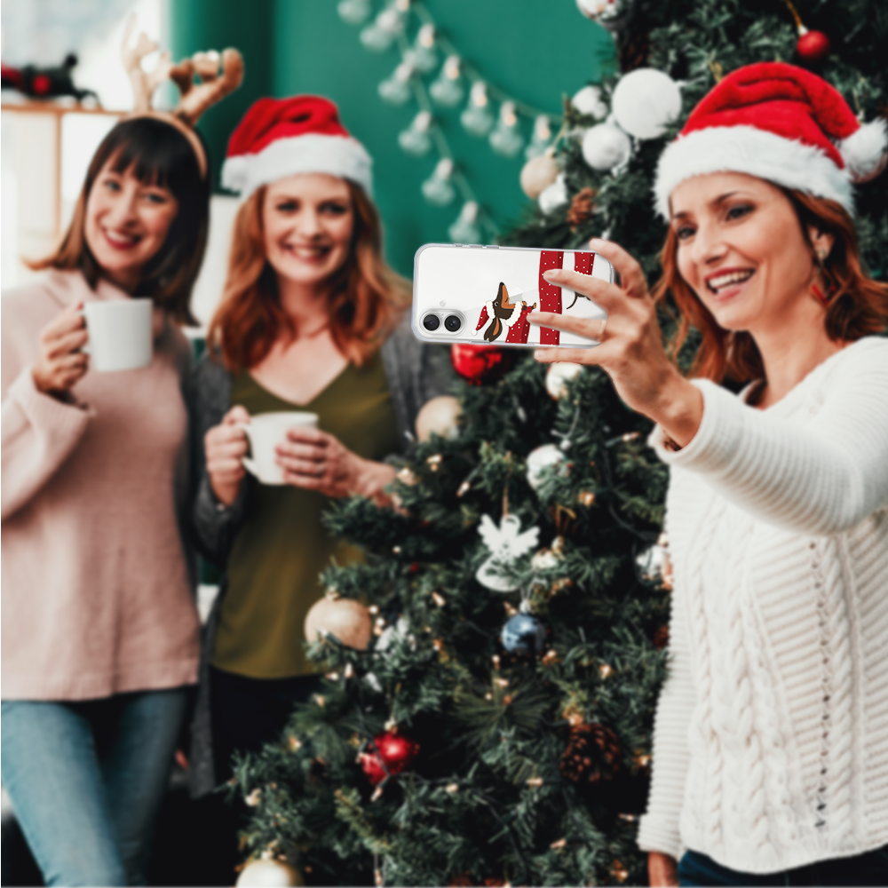 Etui do iPhone 16, Przytulne święta, Świąteczny jamnik, przeźroczyste1