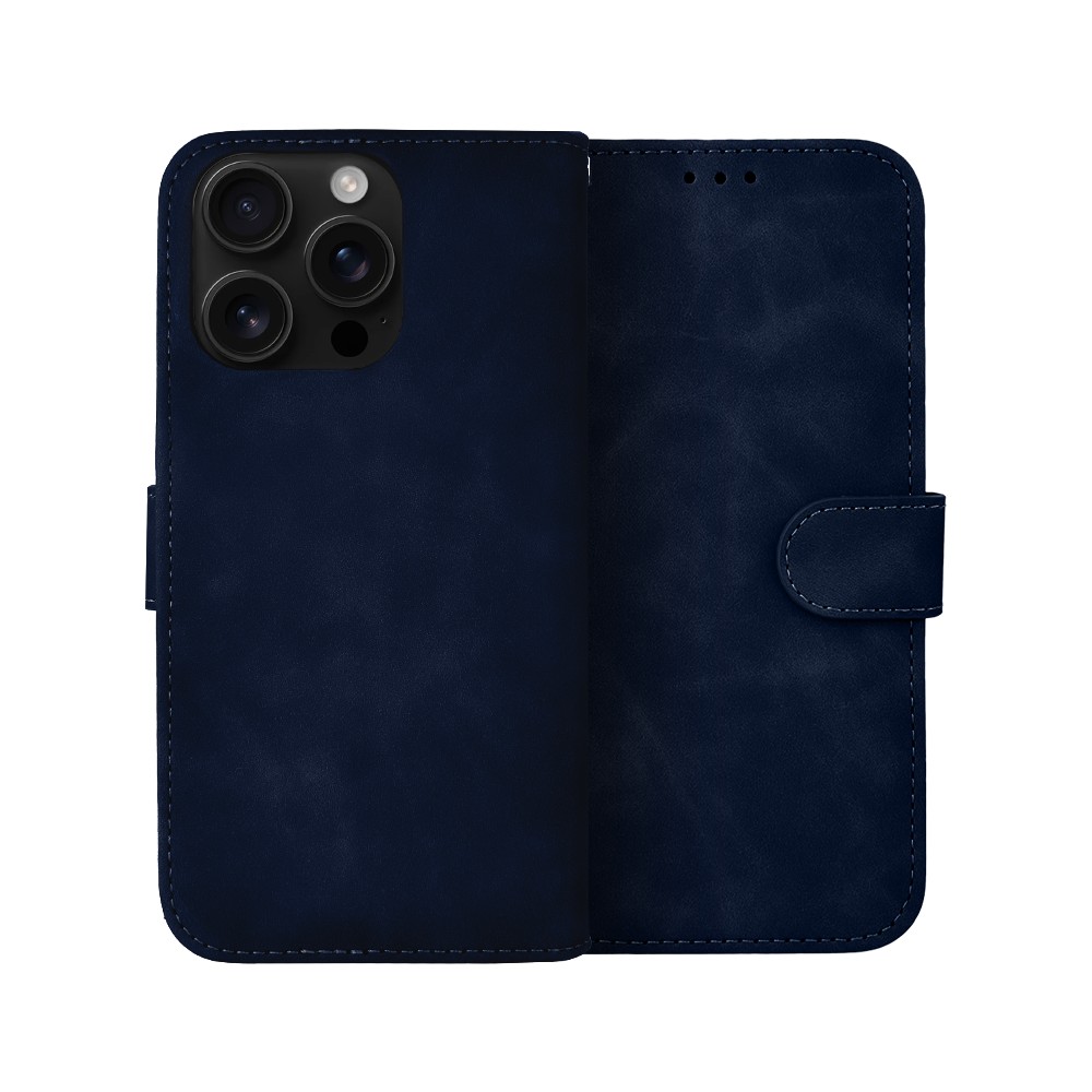 Etui do iPhone 16 Pro książkowe Velvet Touch, aksamitne, portfelowe z zamknięciem, granatowe (1)