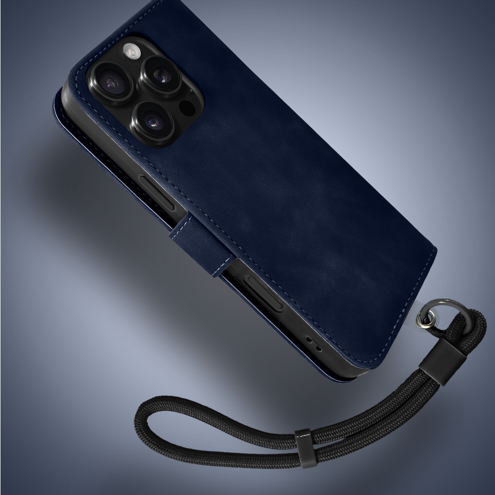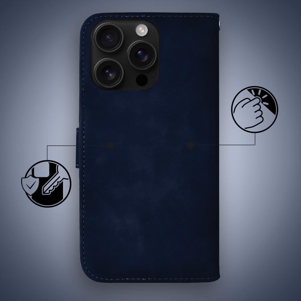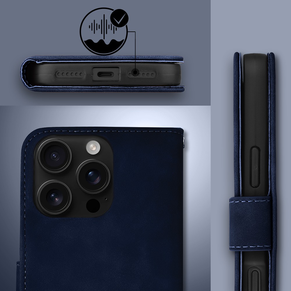 Etui do iPhone 16 Pro książkowe Velvet Touch, aksamitne, portfelowe z zamknięciem, granatowe (6)