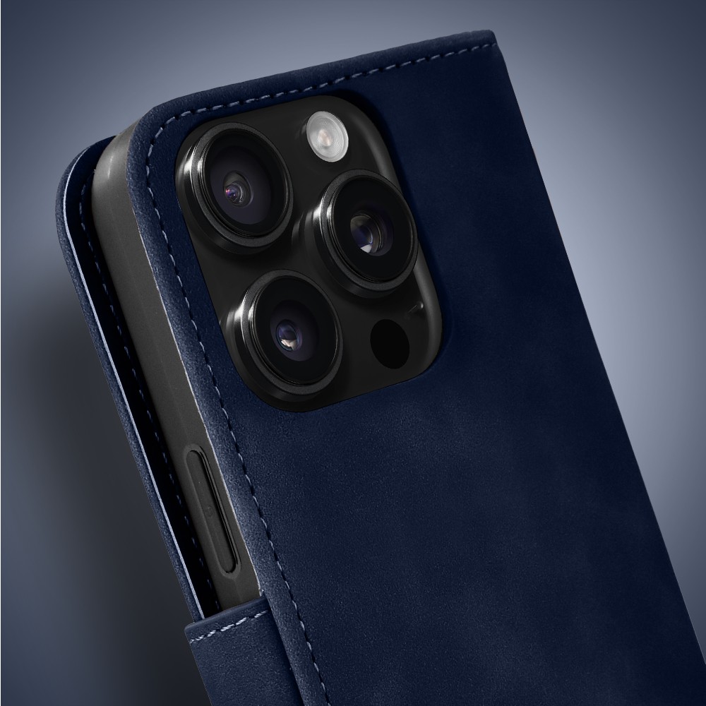 Etui do iPhone 16 Pro książkowe Velvet Touch, aksamitne, portfelowe z zamknięciem, granatowe (3)