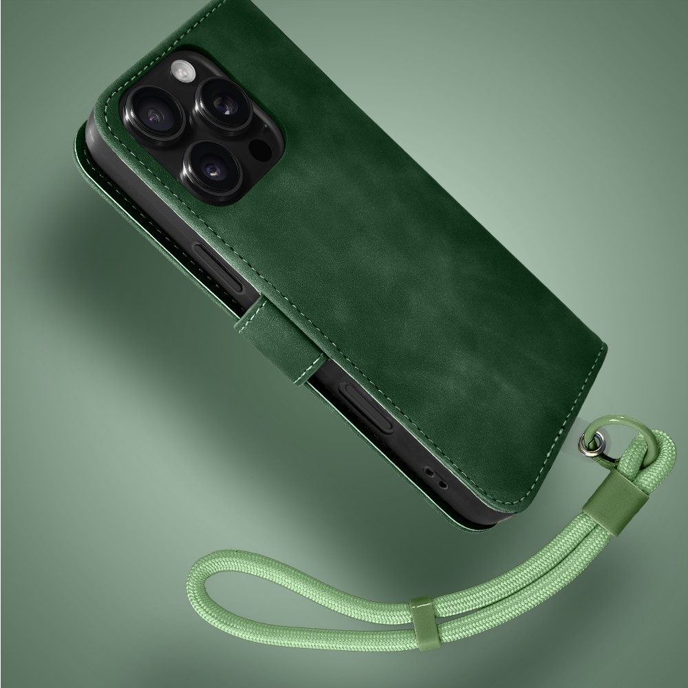 Etui do iPhone 16 Pro książkowe Velvet Touch, aksamitne, portfelowe z zamknięciem, zielone (9)