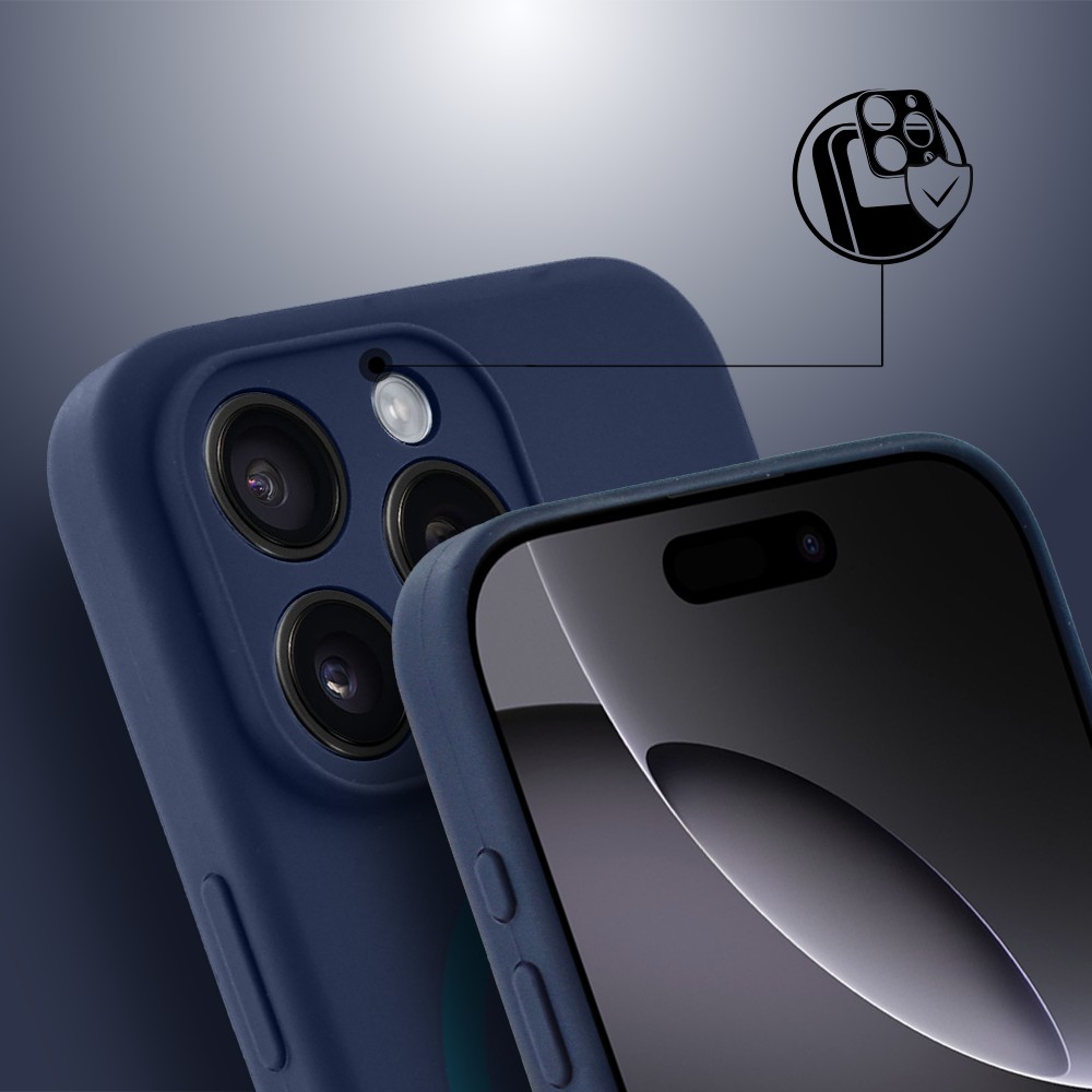 Etuitelefon.pl > Akcesoria do iphone 16 pro max > Etui iphone 16 pro max > Etui do iphone 16 pro max, silikonowe z magsafe, mikrofibra soft touch z osłoną na aparat, granatowe