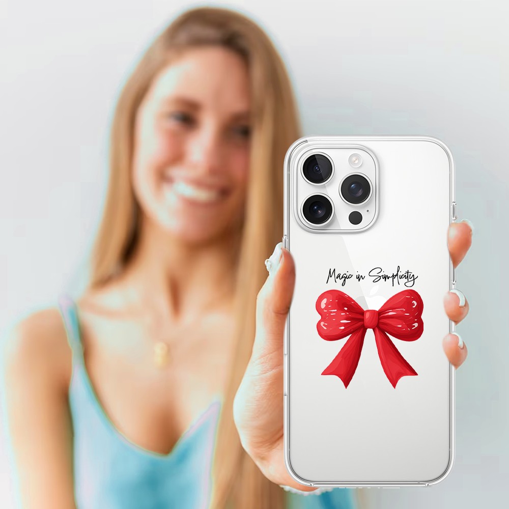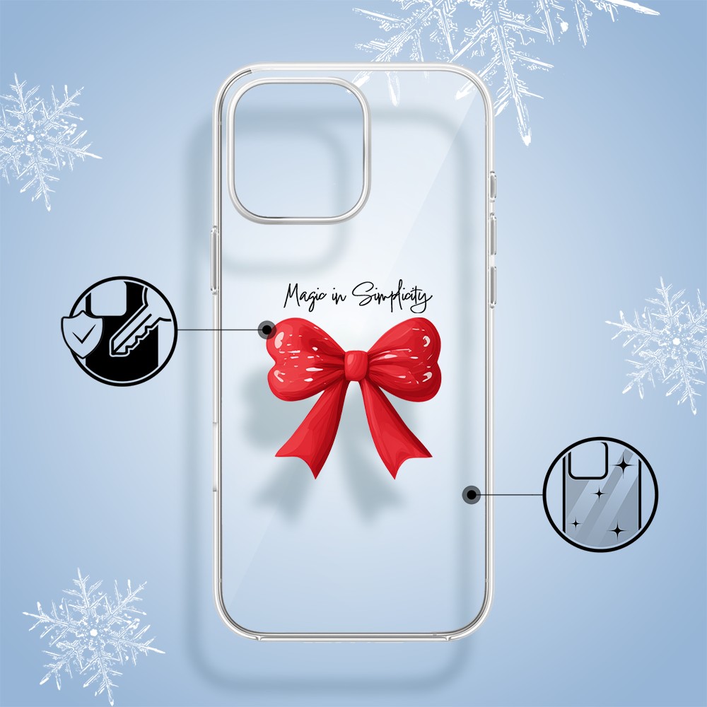 Etuitelefon.pl > Akcesoria do iphone 16 pro > Etui iphone 16 pro > Etui do iphone 16 pro, przytulne święta, czerwona kokarda, przeźroczyste