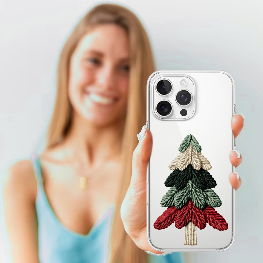 Etuitelefon.pl > Akcesoria do iphone 16 pro > Etui iphone 16 pro > Etui do iphone 16 pro, przytulne święta, dziana choinka, przeźroczyste