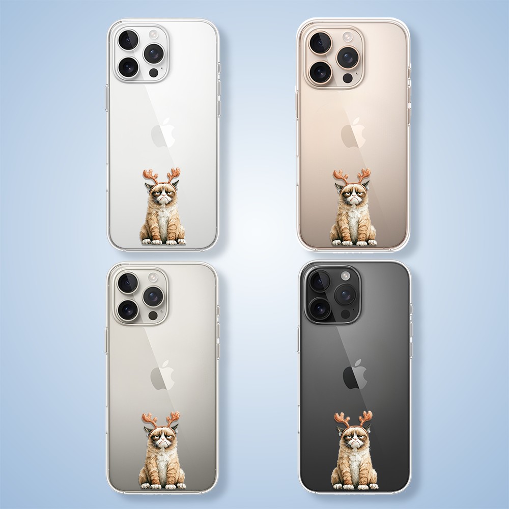 Etuitelefon.pl > Akcesoria do iphone 16 pro > Etui iphone 16 pro > Etui do iphone 16 pro, przytulne święta, kot który nie chciał być reniferem, przeźroczyste