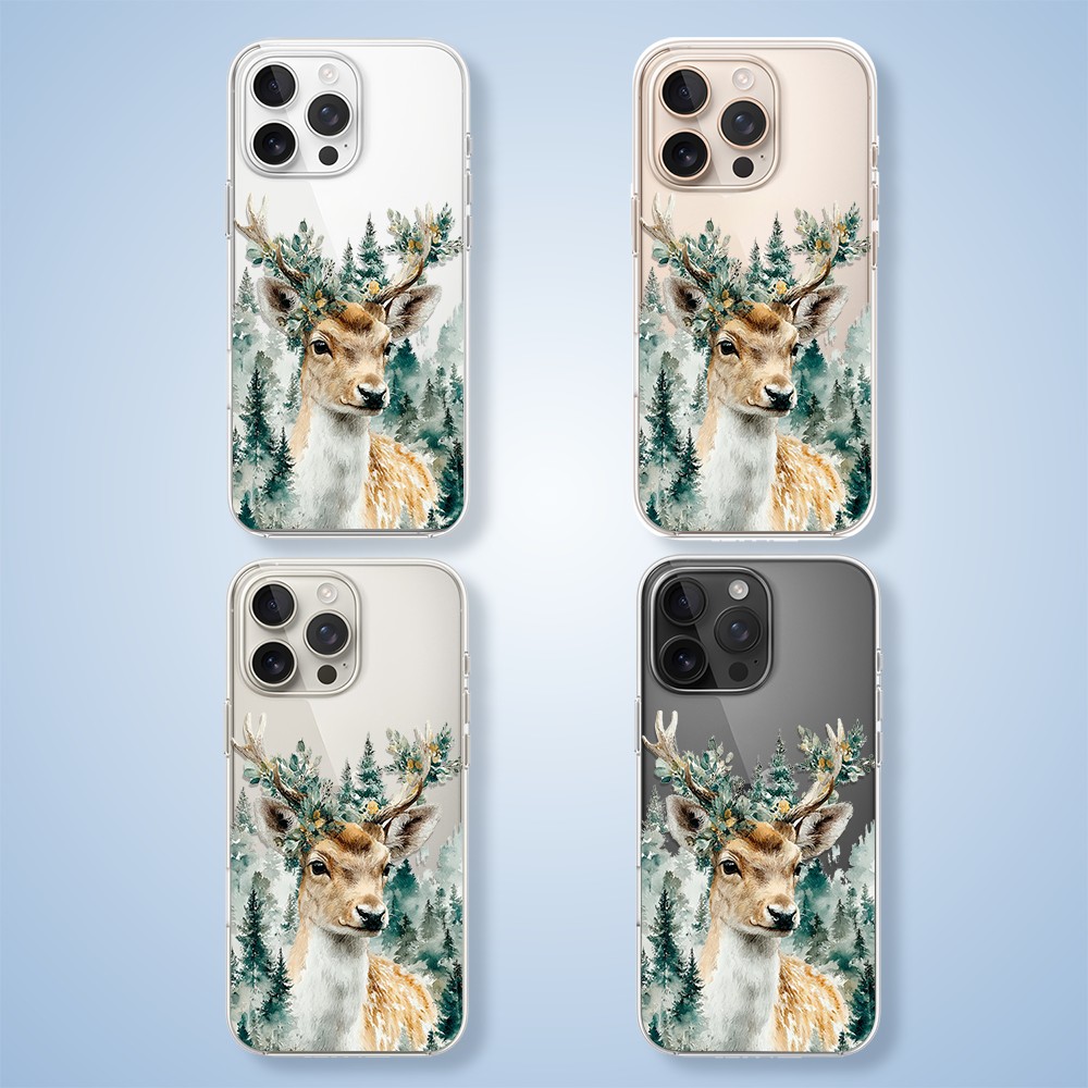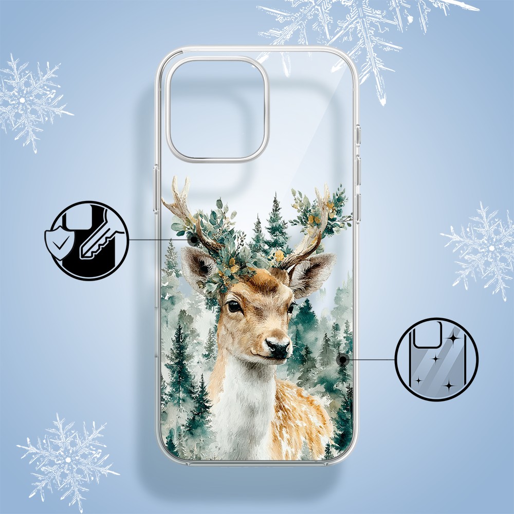 Etuitelefon.pl > Akcesoria do iphone 16 pro > Etui iphone 16 pro > Etui do iphone 16 pro, przytulne święta, leśny jelonek, przeźroczyste