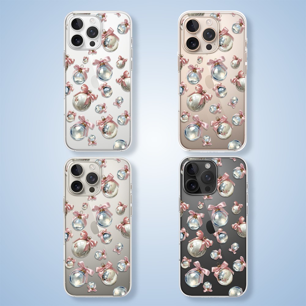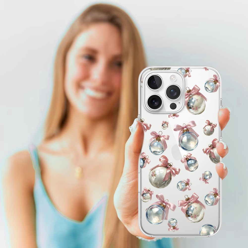 Etuitelefon.pl > Akcesoria do iphone 16 pro > Etui iphone 16 pro > Etui do iphone 16 pro, przytulne święta, pastelowe bombki, przeźroczyste