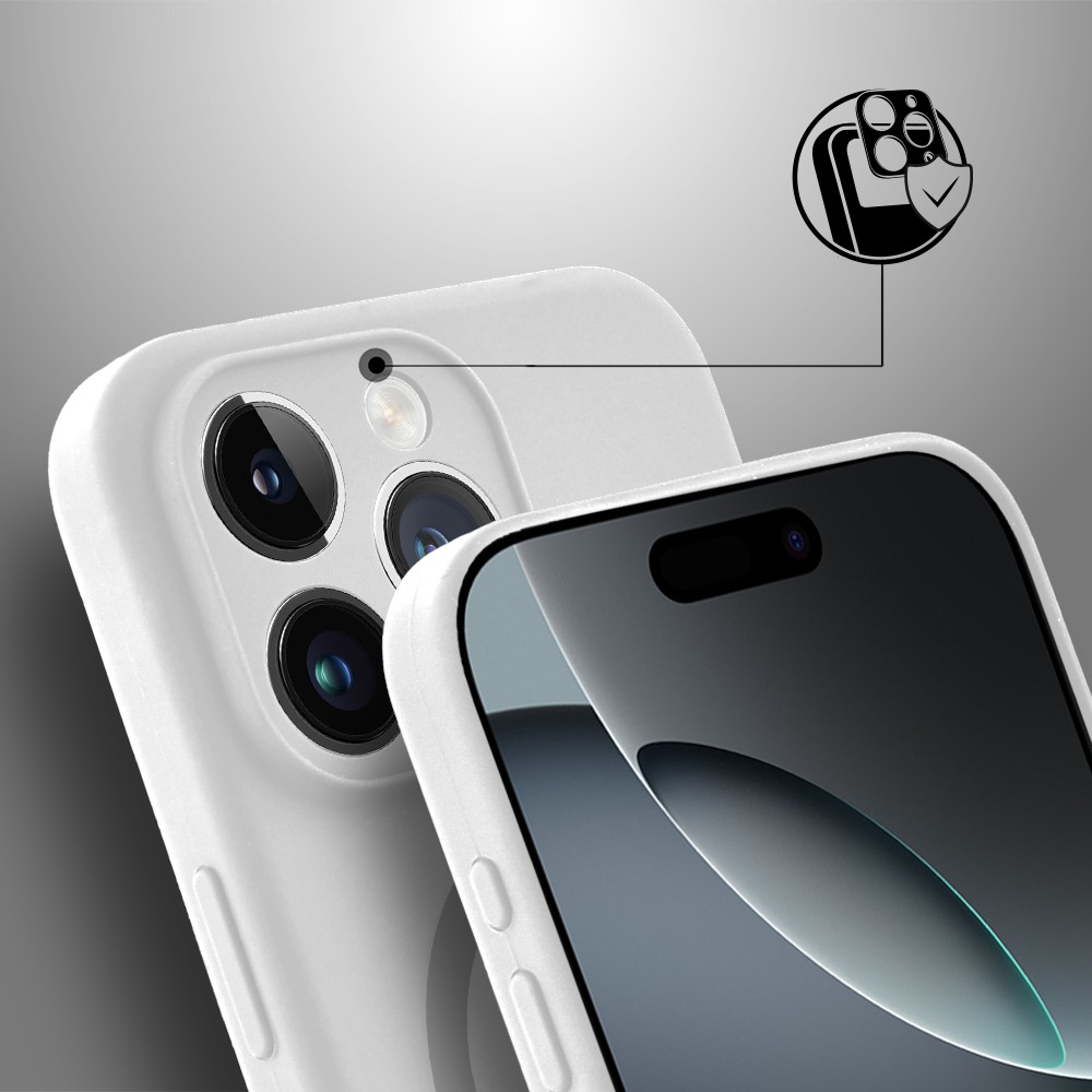 Etui do iPhone 16 Pro Max, silikonowe z MagSafe, mikrofibra soft touch z osłoną na aparat, białe (1)