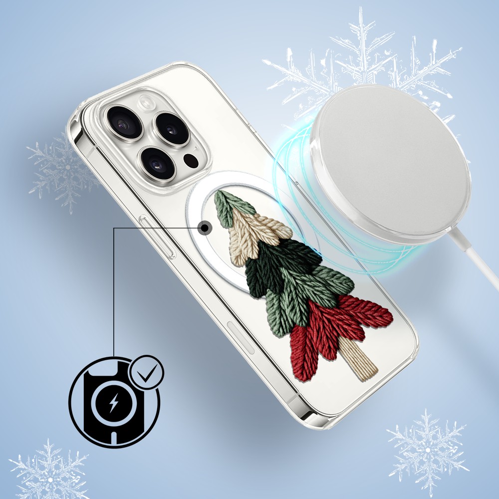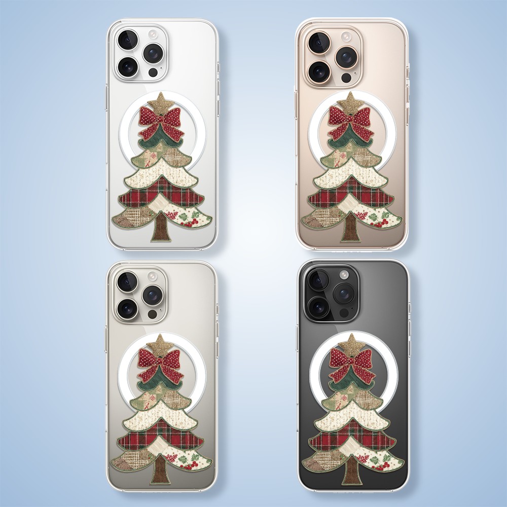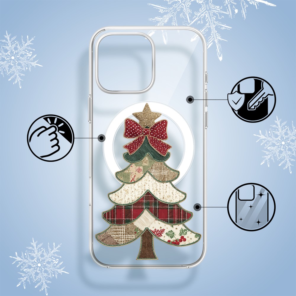 Etuitelefon.pl > Akcesoria do iphone 16 pro > Etui iphone 16 pro > Etui do iphone 16 pro z magsafe, przytulne święta, kraciasta choinka, przeźroczyste