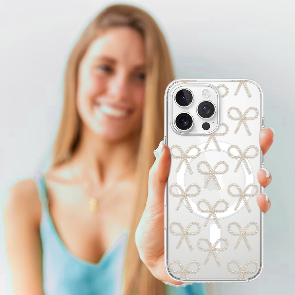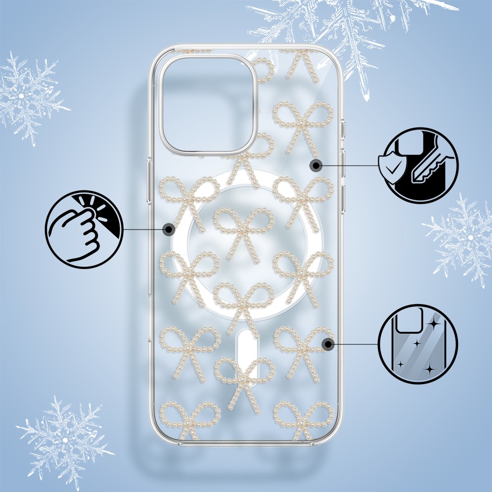 Etuitelefon.pl > Akcesoria do iphone 16 pro > Etui iphone 16 pro > Etui do iphone 16 pro z magsafe, przytulne święta, złote kokardki, przeźroczyste