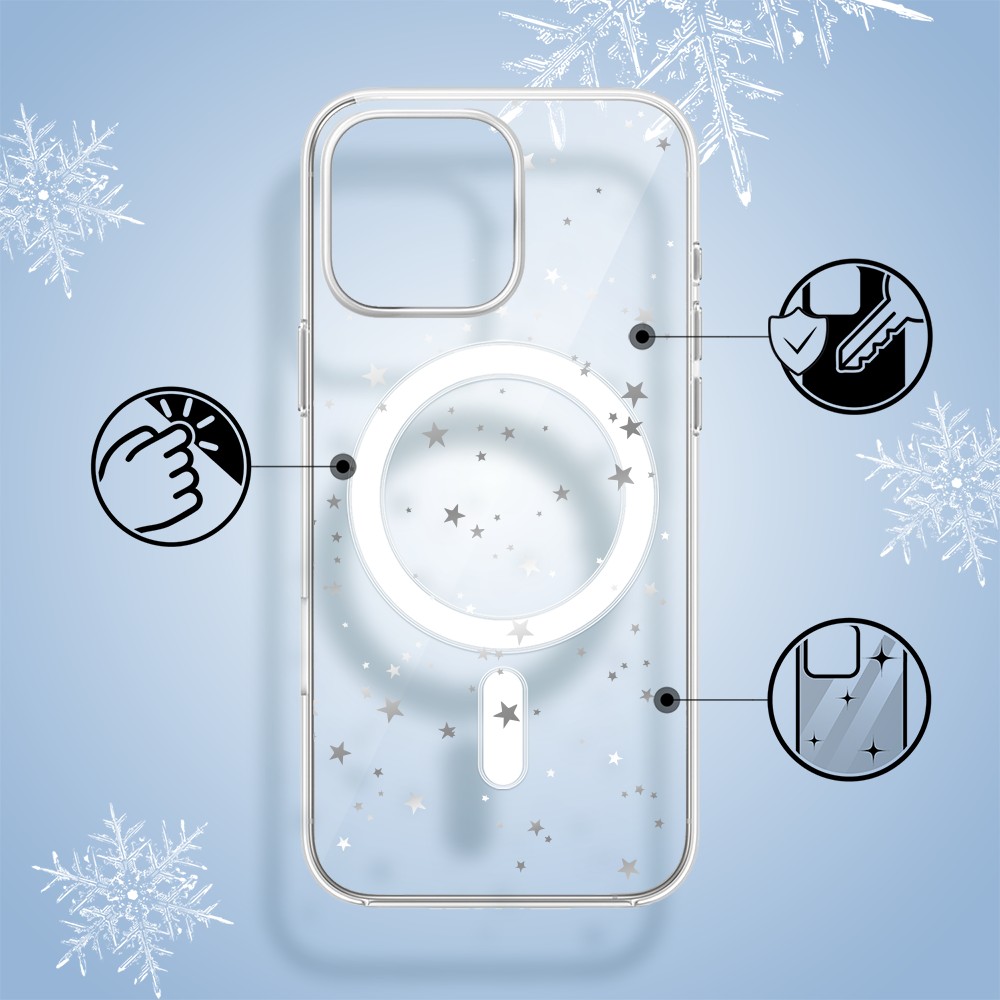 Etuitelefon.pl > Akcesoria do iphone 16 pro > Etui iphone 16 pro > Etui do iphone 16 pro z magsafe, zimowa magia, szampańskie gwiazdki, przeźroczyste