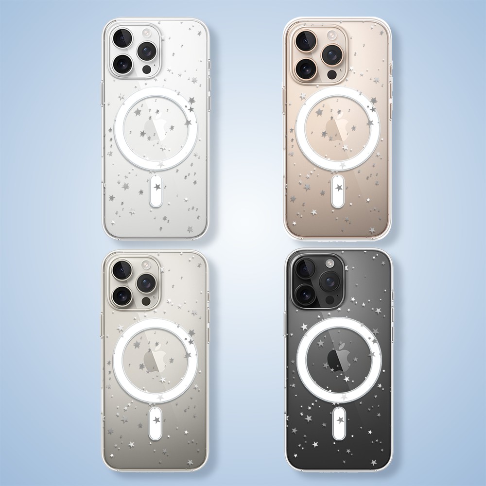 Etui do iPhone 16 Pro Max z MagSafe, Zimowa Magia, Szampańskie gwiazdki, przeźroczyste 16 pro-1