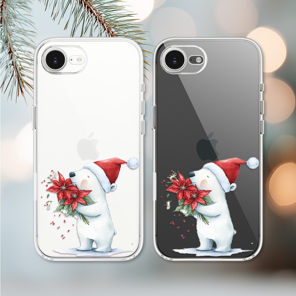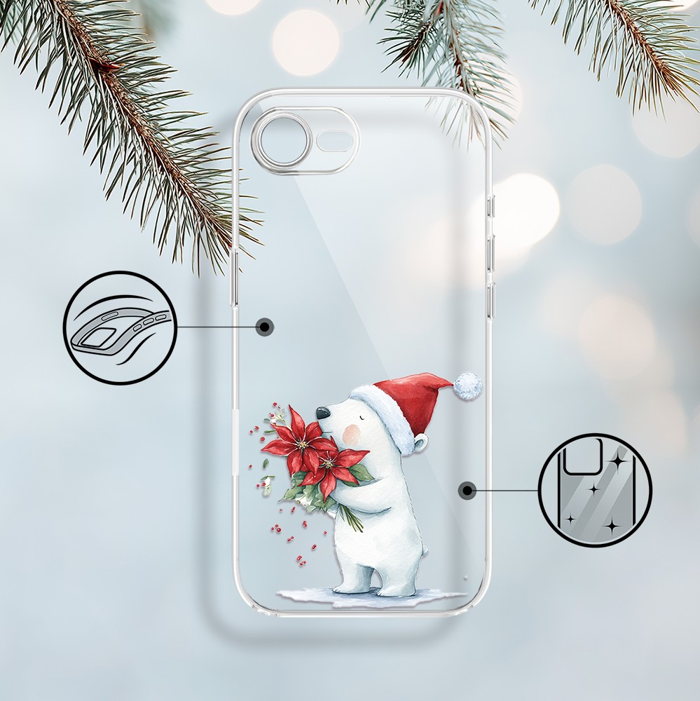 Etui do iPhone 16e, Przytulne święta, Miś świąteczny, przeźroczyste (1)