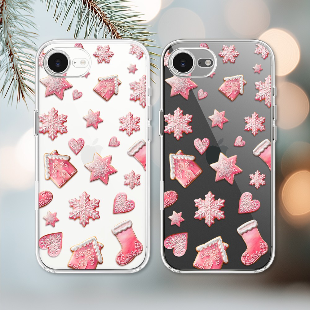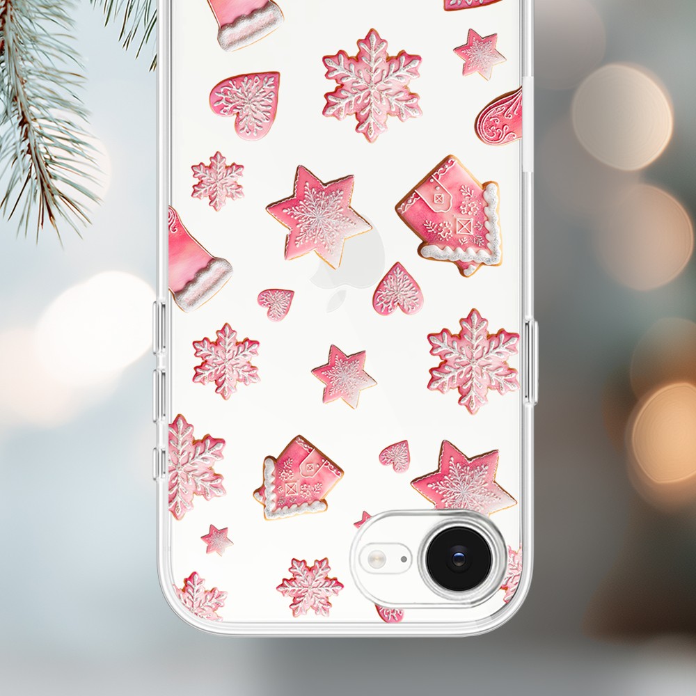 Etui do iPhone 16e, Przytulne święta, Różowe pierniczki, przeźroczyste (3)